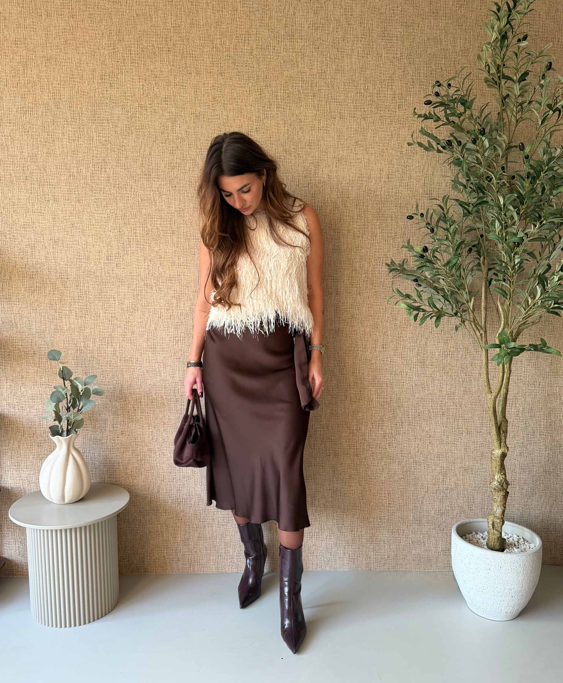 - Materiaal: zachte, fluffy faux fur (shaggy knit)